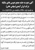 خاص به شماره ثبت و شناسه ملی از کلیه سهامداران دعوت به عمل