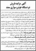 خودروی سواری سمند آگهی مزایده فروش دو دستگاه خودرو سواری