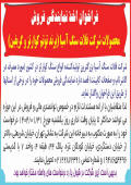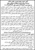 اول در اجرای ماده ۲۲۵ اصلاحیه قانون تجارت از کلیه بستانکاران روزنامه اطلاعات آگهی مزایده فروش زمین تفکیک شده و سند دار