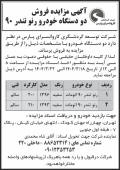 کنندگان روزنامه اطلاعات آگهی مزایده فروش دو دستگاه خودرو رنو تندر