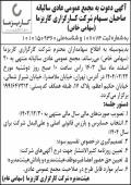 آگهی دعوت به مجمع عمومی عادی سالیانه صاحبان سهام شرکت